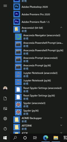 仮想環境の切り替えは、下記のコマンドで実行します。Windows版のAnacondaでは、仮想環境を作るとWindowsのスタートメニュー上にも仮想環境ごとのメニュー(例えば、Anaconda Powershell Prompt (py36)のような)が追加されます。それを使って仮想環境を切り替えても良いでしょう。