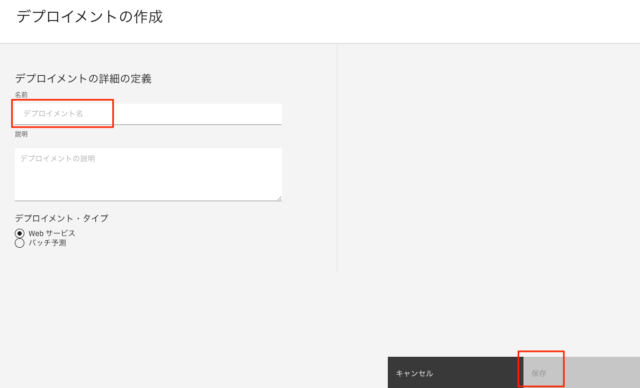 デプロイメントの作成画面が開くので、適当な名前をつけて保存ボタンをクリックすれば、デプロイ完了です。